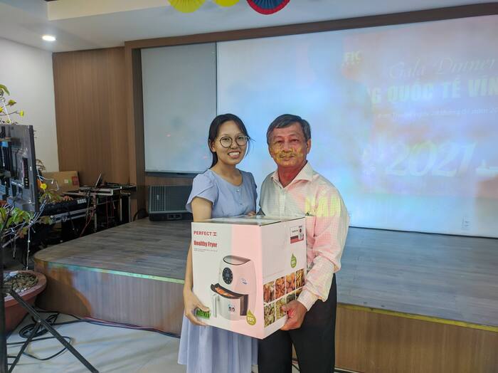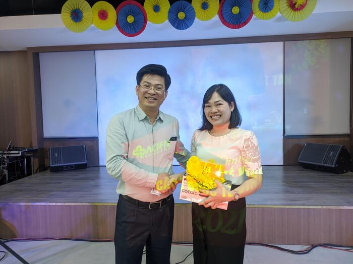 Mr. Nghiem Xuan Hung gave the lucky draw prize to Mrs. To Thi Thuy Linh, Vinh Tan International Port’s Accounting Department
